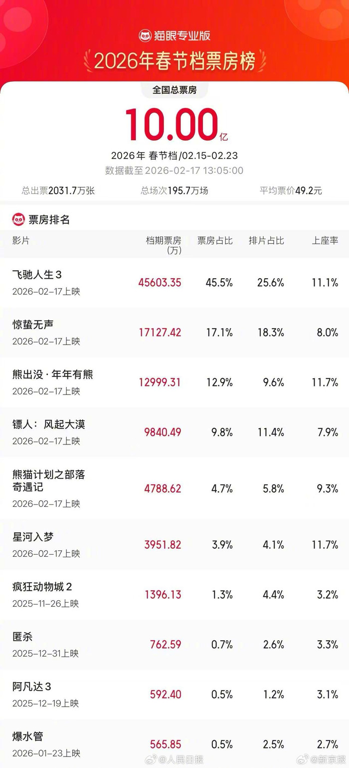 #本年春节档你策画看哪部#[#马年春节档票房破10亿元#]据收集平台数据,米兰2026年春节档档期总票房(含预售)破10亿,UEDBET《疾驰东谈主生3》暂列春节档票房榜首位,档期票房寰宇登顶。《惊蛰无声》《熊出没·年年有熊》分列二三位。(东谈主民日报)
