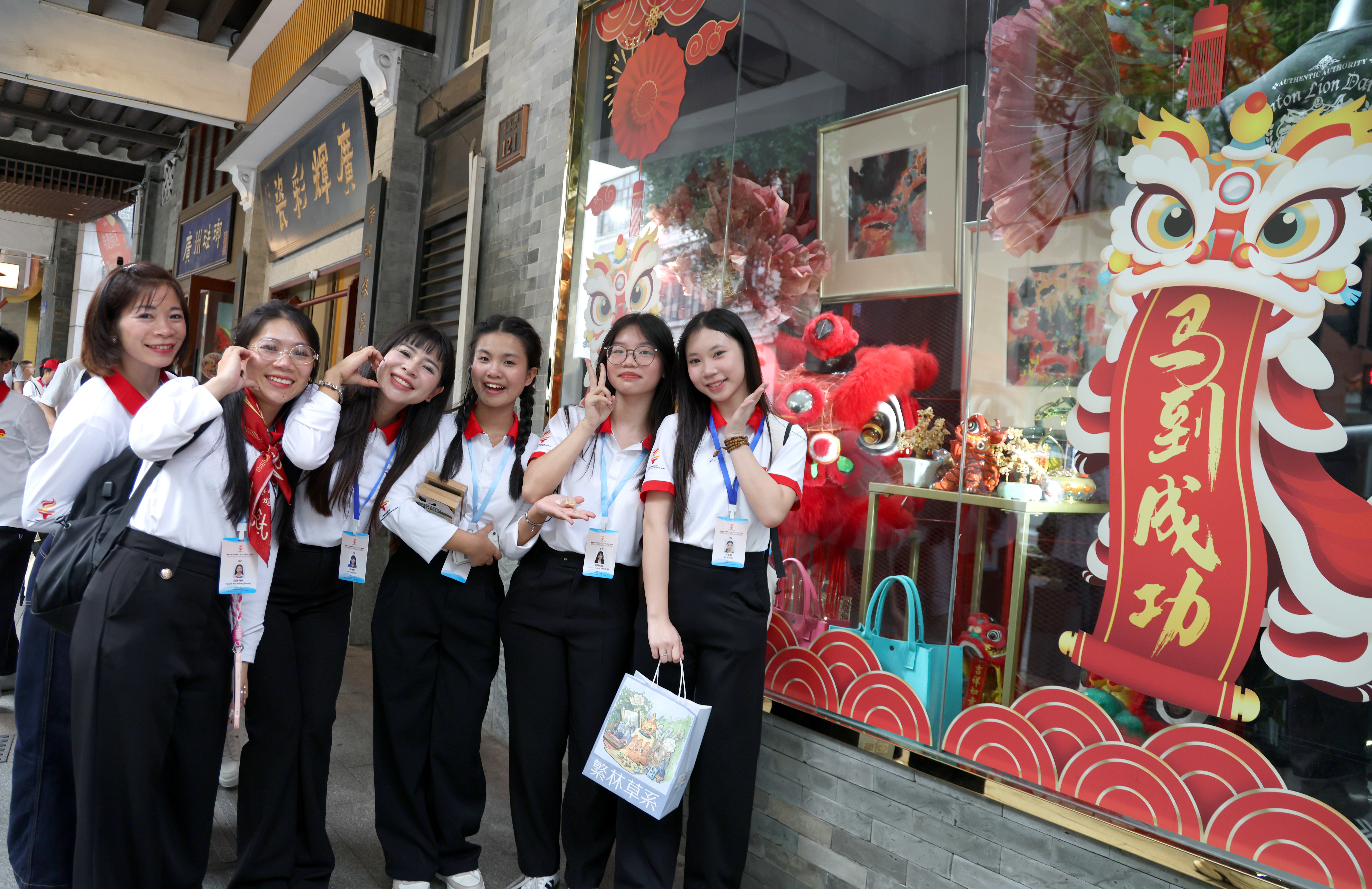 4月12日,越南后生“红色研学之旅”之“不忘初心”研学营成员在广州恩宁路合影。