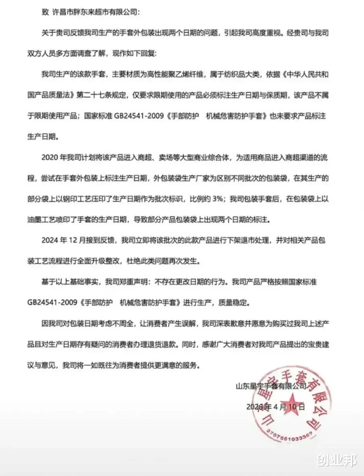【胖东来否定所售“防切割手套”批将来历】4月18日,胖东来发布《对于王海响应胖东来销售星宇品牌“防切割手套”批将来历指控的拜访论说》。论说自满,经专项组重启拜访,举报所称的批将来历事实不设立,但该产物存在施行尺度失效及日历标注不法式问题,不存在破钞诈骗。胖东来决定赐与投诉顾主1万元奖励。(中华网)