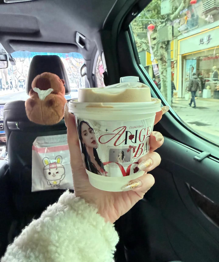 杨颖一更晒出了九张诞辰大片,临了一张即是她拿着粉丝送的应援奶茶拍照。