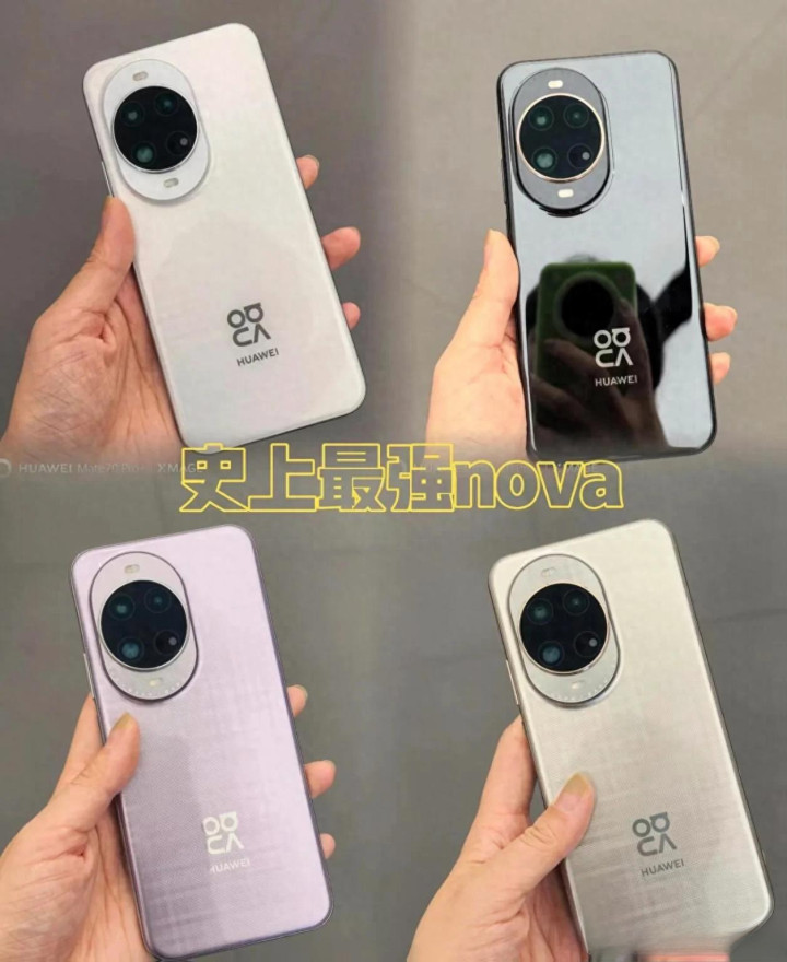 四款华为nova系列手机 · 四款不同配色的华为nova手机后面展示