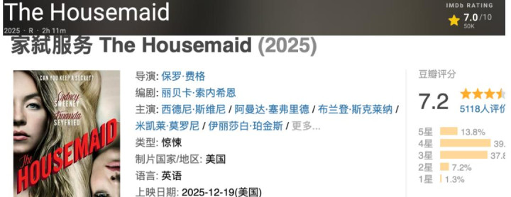 目前豆瓣和IMDb均是7分+。