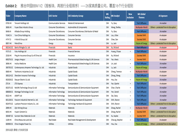 摩根士丹利发布《中国最好生意方式V2》文告红框处为宁波银行